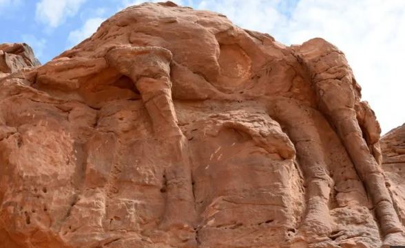 كما تناولت الدراسة نفسها مجموعة أخرى من الأعمال الصخرية المنحوتة في الصحراء السعودية، تُجسّد أشكال إبلٍ عملاقة، يعتقد أنها أقدم النقوش الضخمة للحيوانات في العالم، وكان قد تم اكتشاف هذه المنحوتات لأول مرة عام 2018، وقدّر العلماء في حينها عمرها بنحو 2000 عام، مستندين إلى تشابهها مع النقوش الموجودة في مدينة البتراء الأردنية.