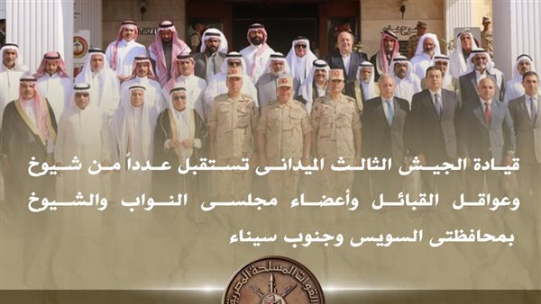الجيش الثالث الميدانى يستقبل شيوخ القبائل وأعضاء البرلمان بالسويس وجنوب سيناء