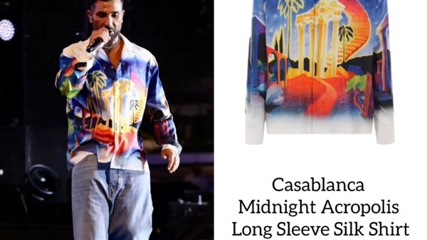 تألق الفنان أحمد سعد بإطلالة لافتة ومفعمة بالألوان والحياة، مرتدياً قميصاً من ماركة "كازابلانكا" الشهيرة.