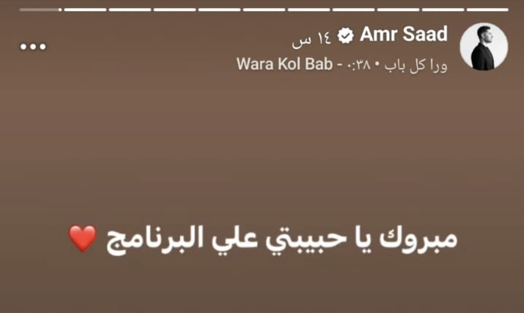 كما هنأها عبر خاصية ستوري على حسابه الشخصي على موقع تبادل الصور والفيديوهات "إنستجرام"، وكتب قائلًا: "مبروك ياحبيبتي على البرنامج".