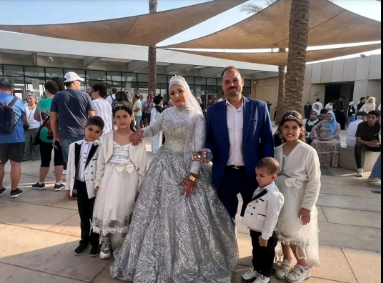 وحرص الزوجان على الظهور بكامل أناقتهما، وارتدى الزوج بدلة أنيقة، وتألقت زوجته بفستان أبيض.