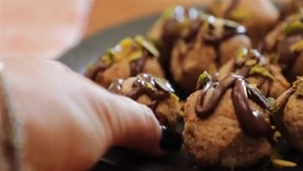 شكلي من العجينة كرات صغيرة الحجم وضعيها في طبق التقديم وغطيها بالنايلون وأدخلي الطبق للثلاجة لمدة نصف ساعة.