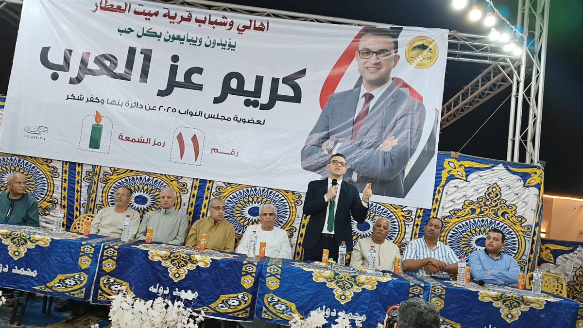 كما أكد المتحدثون أن المرحلة المقبلة تتطلب من الجميع التكاتف والاصطفاف خلف ابن قرية ميت العطار كريم عز العرب لبدء مسيرة البناء والتنمية، داعين الأهالي إلى المشاركة الواعية والإيجابية في الانتخابات المقبلة من أجل مستقبل أفضل لأبناء القرية ودائرة بنها وكفر شكر .