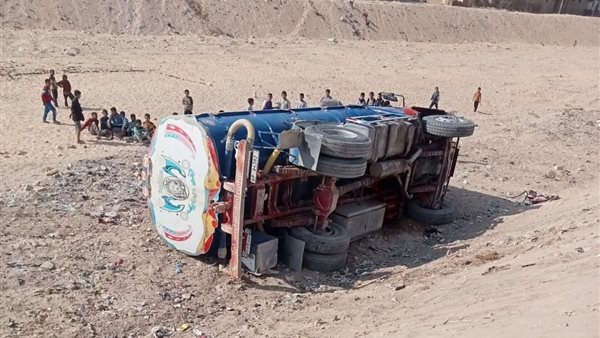 العناية الإلهية تُنقذ سائقًا من كارثة انقلاب سيارة نقل مواد بترولية بالصف