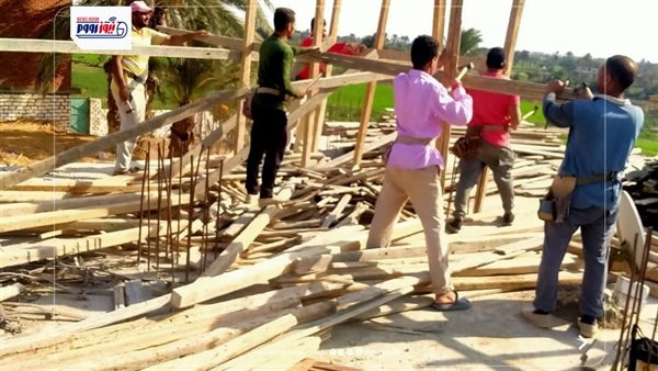 رئيس مدينة طامية : فك شدة خشبيه جاهزة لصب الخرسانة بقرية قصر رشوان