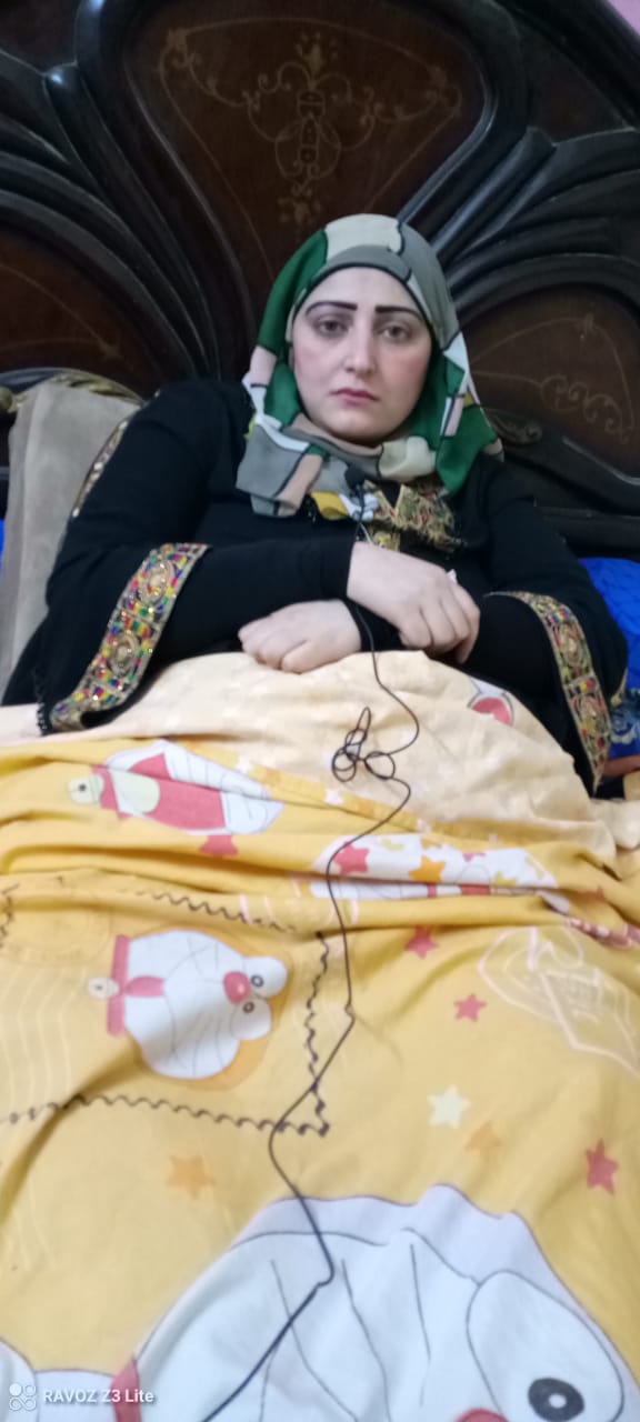 الأم بالرغم من أنها مريضة سكر وكلى إلا أنها تحولت من ربه منزل إلى خادمة لأبنتها منذ 18 عاما تسهر على راحة نجلتها الشابة صاحبة الـ 38 عاما حاليا، والذى أصبحت مصابه بضمور كامل فى النصف الأسفل من جسدها بعد إصابتها بالشلل النصفى لتوقف علاجها عقب وفاة الأب تددهورت حالتها الصحية، أصبحت الأم هى رب الأسرة والعائل الوحيد لها ولأبننها قعيدة الفراش.