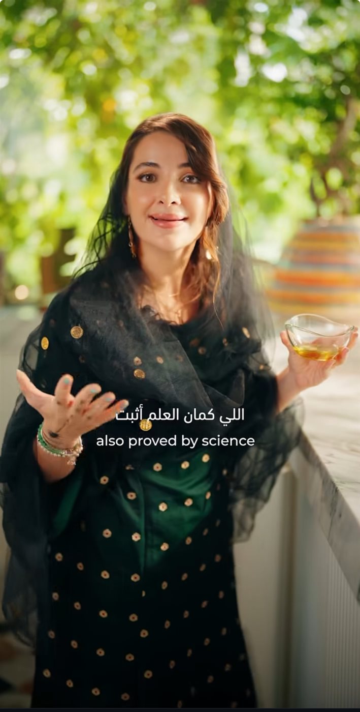 وآخر شيء نضع زيت السمسم فهو مضاد للأكسدة ومضاد للالتهاب ويساعد على الترطيب العميق.
