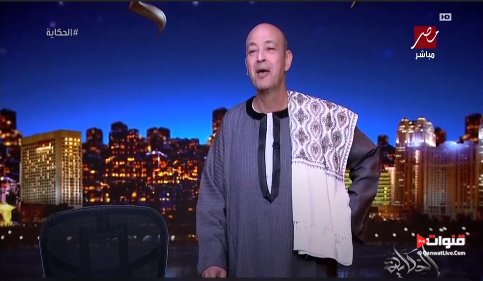 أعد المصمم هشام الشرقاوي جلابية الإعلامي عمرو أديب في وقت قياسي لم يتجاوز 24 ساعة، لتظهر بها شخصية الإعلامي الشهيرة خلال برنامجه "الحكاية".