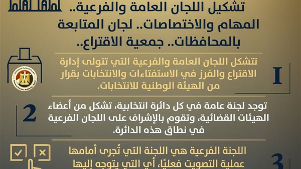 أصدرت وزارة الشؤون النيابية والقانونية بيانًا قالت فيه إنه استمرارًا لحملة توعية وتواصل التي بدأتها الوزارة بالتزامن مع انتخابات مجلس النواب، نشرت اليوم الأحد ٩ نوفمبر ٢٠٢٥، إنفوجرافات توعية تتعلق باللجان الانتخابية، وكل الأسئلة حولها، بعنوان (توعية وتواصل.. كل ما تريد معرفته عن اللجان الانتخابية.. تشكيل اللجان العامة والفرعية.. المهام والاختصاصات.. لجان المتابعة بالمحافظات.. جمعية الاقتراع).