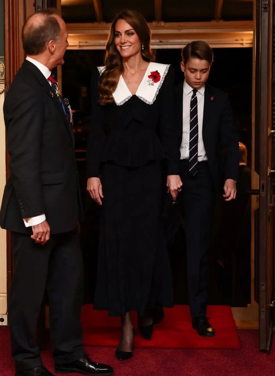 اختارت كيت لهذه المناسبة إطلالة سوداء أنيقة من دار Alessandra Rich التزمت فيها بتقاليد الحداد الملكي، ونسّقتها مع حقيبة Mulberry من الجلد السويدي. أما الرمزيات فكانت لافتة ومدروسة قرطا لؤلؤ البحرين العائدان للملكة إليزابيث الثانية استحضاراً للإرث العائلي، وزهرة الخشخاش اليدوية من تصميم خريجة شابة دعماً للحرفيين البريطانيين، وبروش الشوك الفضي الاسكتلندي تعبير عن وحدة المملكة وتنوع رموزها التاريخية