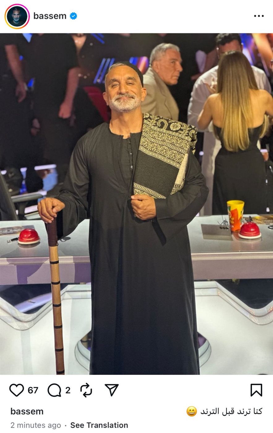 وعلق باسم يوسف على الصورة قائلًا: “كنا تريند قبل التريند”، إذ أن صورته تلك كانت خلال حلقة من برنامج "Arabs Got Talent" الذي تم عرضه في العام الماضي.