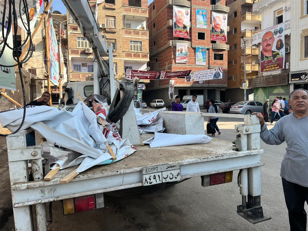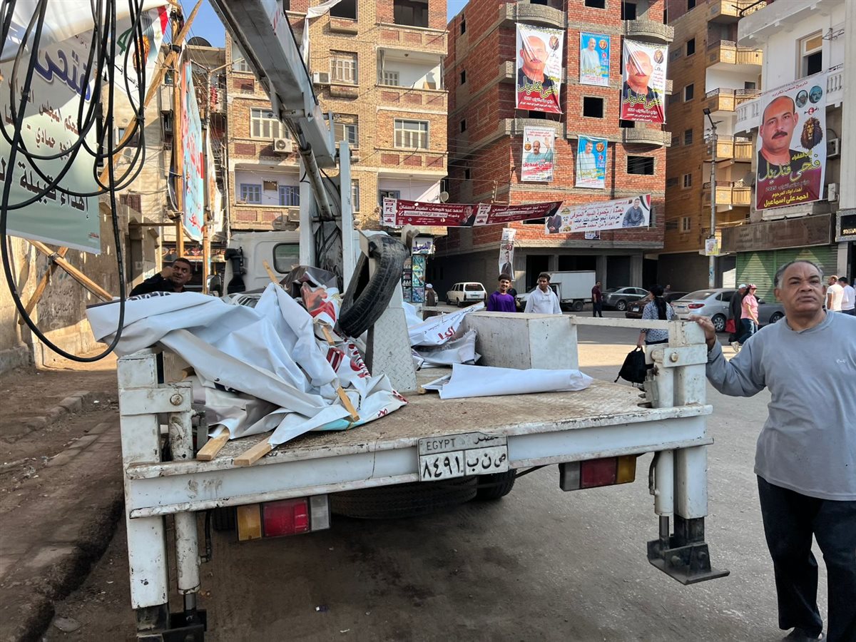 محافظة قنا تشن حملات مكثفة لإزالة لافتات الدعاية الانتخابية من أمام اللجان