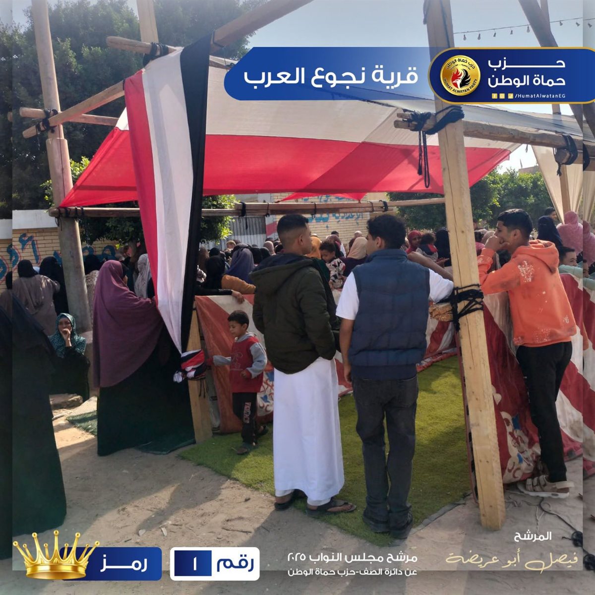 شهدت قرية نجوع العرب على اللجان الانتخابية إقبالاً كبيراً من المواطنين في انتخابات مجلس النواب، دعمًا للمرشح فيصل أبو عريضة المرشح عن حزب حماة وطن، وذلك في أجواء من الوعي والالتزام، وسط تعاون من الجميع واحترام كامل لإجراءات العملية الانتخابية.