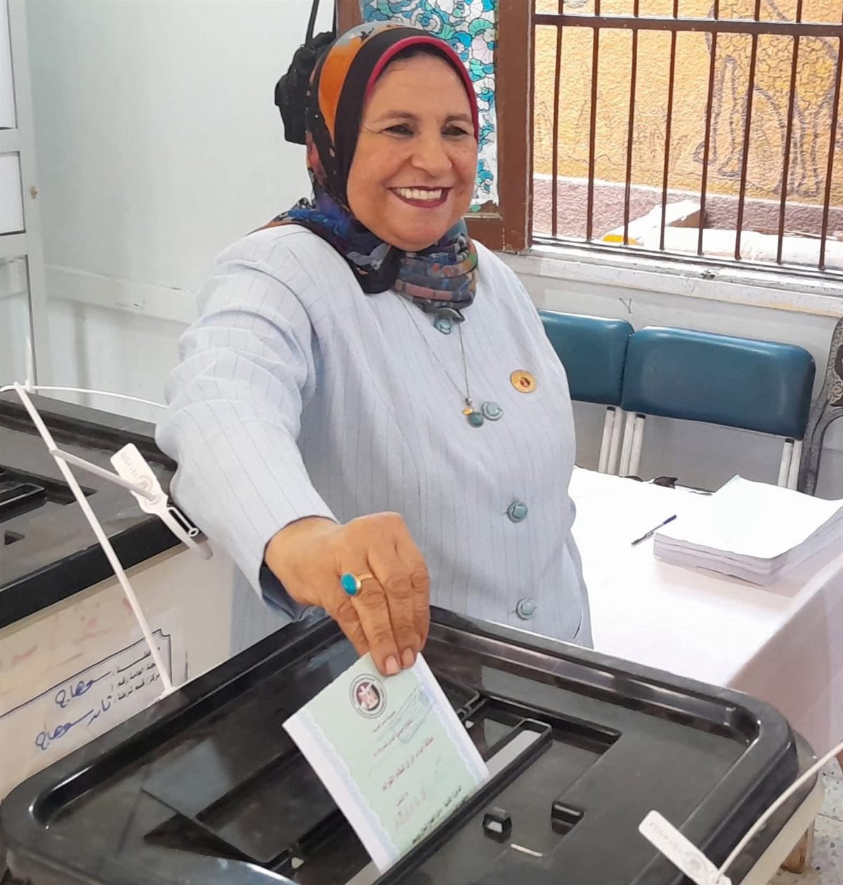 أمينة المرأة بحماة الوطن بسوهاج ومرشحة القائمة الوطنية تُدلي بصوتها