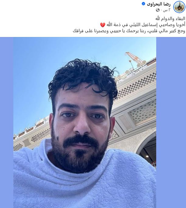 كما نعى الفنان رضا البحراوي، زميله الفنان إسماعيل الليثي، وكتب عبر صفحته الرسمية الفيسبوك: "البقاء والدوام لله، أخويا وصاحبي إسماعيل الليثي في ذمة الله، وجع كبير مالي قلبي، ربنا يرحمك يا حبيبي ويصبرنا على فراقك"