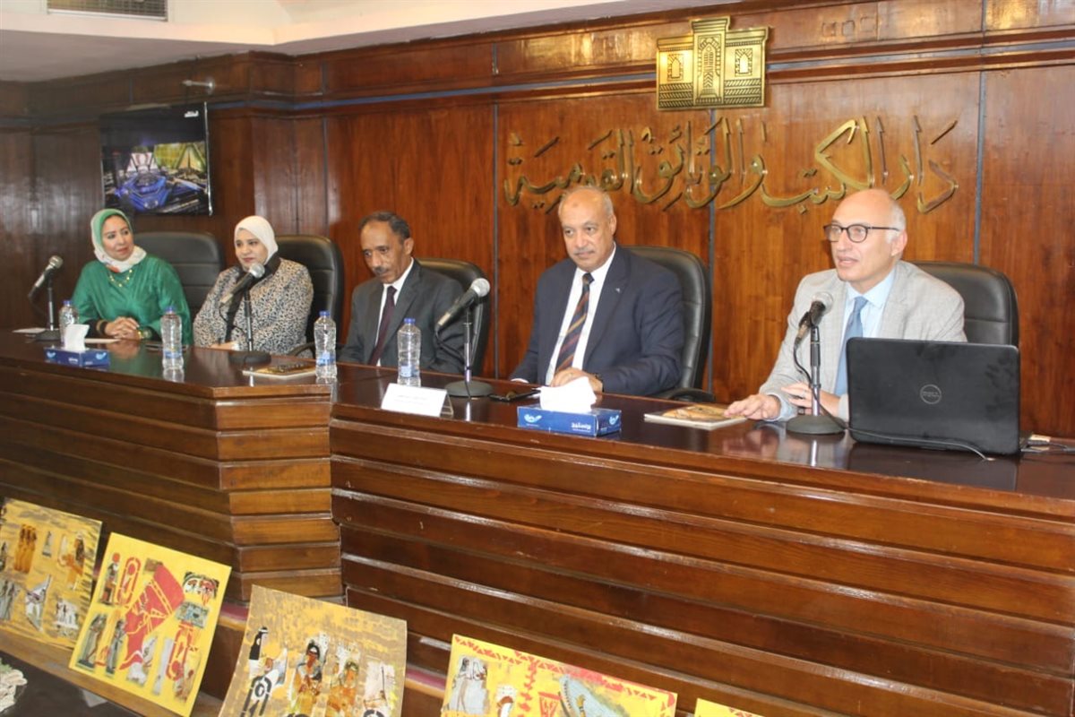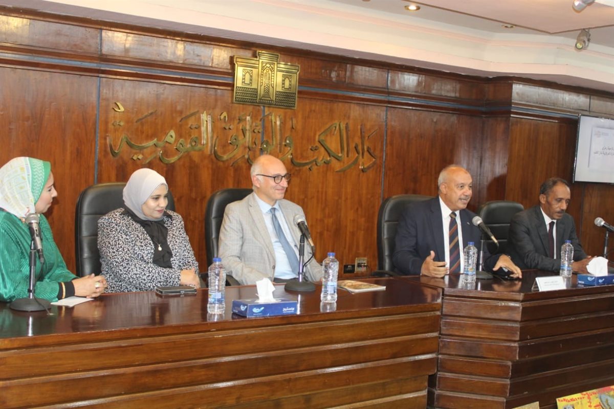 احتفاءً بافتتاح المتحف المصري الكبير، وتحت رعاية الأستاذ الدكتور أحمد فؤاد هنو وزير الثقافة، نظمت دار الكتب والوثائق القومية برئاسة الأستاذ الدكتور أسامة طلعت ندوة ثقافية بعنوان "أنغام من قلب التاريخ"،الاثنين 10 نوفمبر 2025، بقاعة علي مبارك بدار الكتب، شارك في الندوة الأستاذ الدكتور ميسرة عبد الله حسين، أستاذ الآثار والديانة المصرية القديمة بكلية الآثار جامعة القاهرة، ونائب المدير التنفيذي لهيئة متحف الحضارة سابقًا، والأستاذ الدكتور طارق سيد توفيق، أستاذ الآثار المصرية القديمة ومدير المتحف المصري الكبير سابقًا، والفنانة مروة محيي، مدير متحف ومركز راتب صديق، بمشاركة مجموعة من الفنانين الشباب من ذوي الهمم في ورشة فنية مصاحبة.