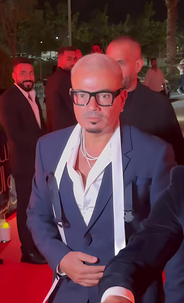 وحرص الفنان على الظهور بإطلالة تجمع بين الكلاسيكية والعصرية، إذ ارتدى بدلة بلون أزرق داكن مع قميص أبيض مفتوح الأزرار، وأكمل اللوك بارتداء نظارة سوداء وإكسسوارات لافتة للنظر.
