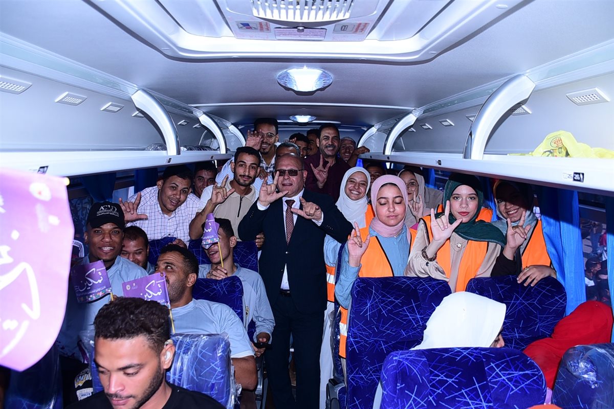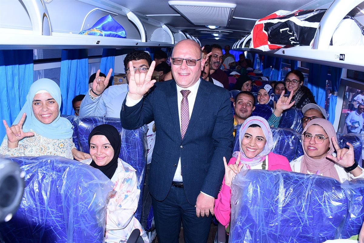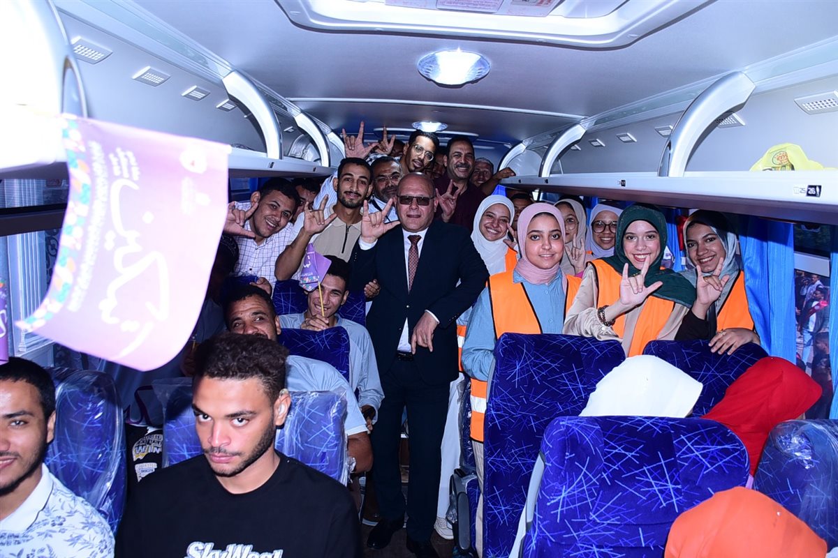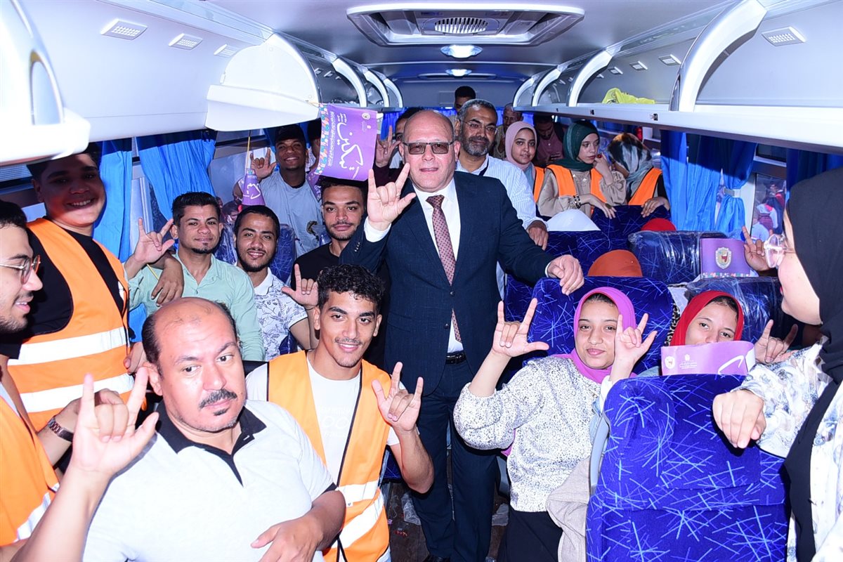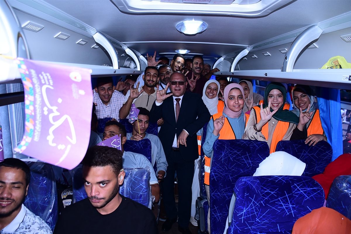 رئيس جامعة سوهاج وسط طلاب ذوي الإعاقة أثناء نقلهم للمقرات الانتخابية