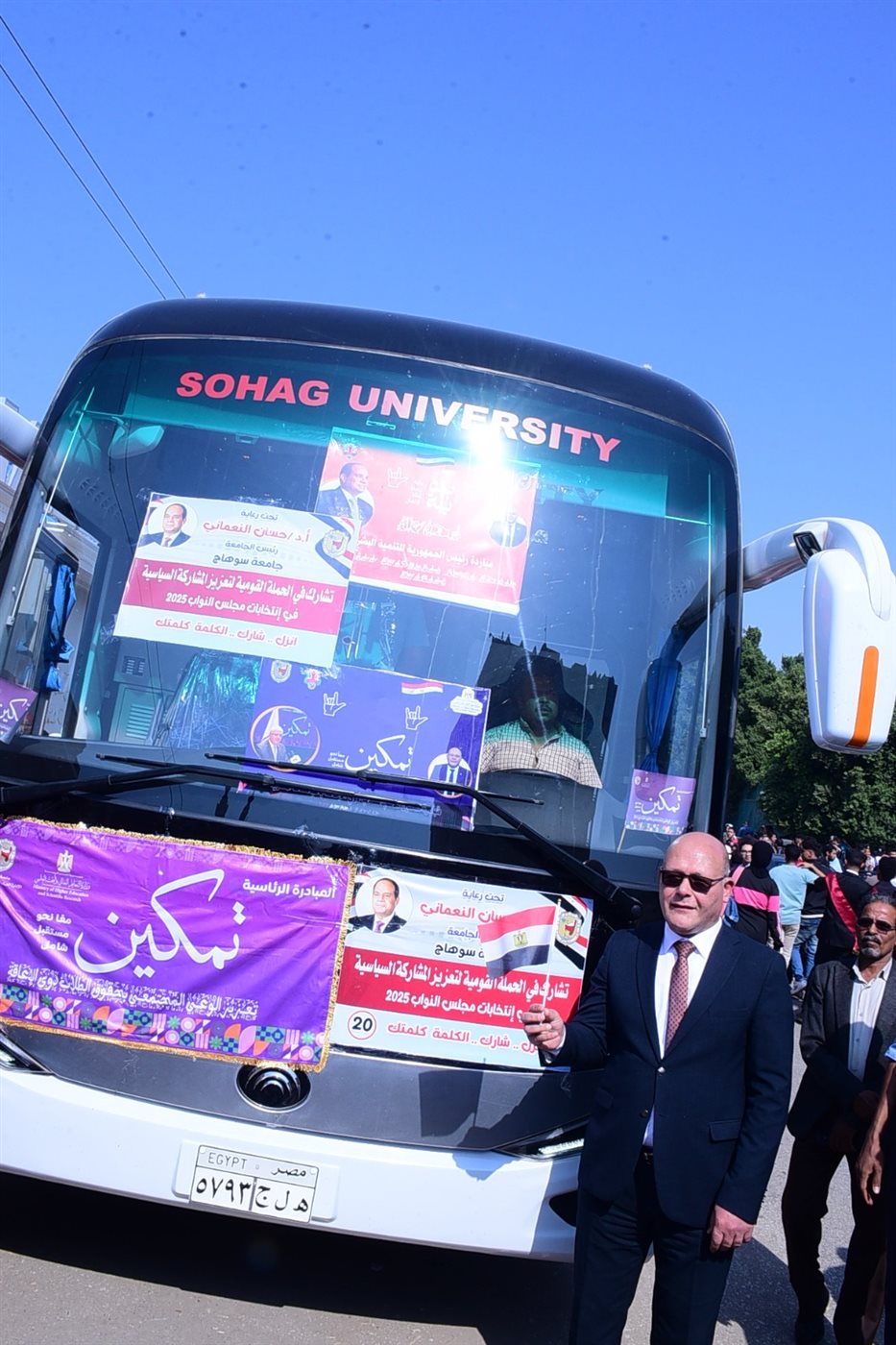 رئيس جامعة سوهاج يقود مسيرة طلابية لصناديق الانتخابات