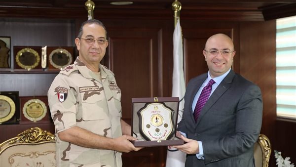 محافظ بني سويف وقائد قوات الدفاع الشعبي والعسكري يتبادلان دروع تكريمية
