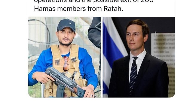وجاء هذا النفي عقب تقرير بثته قناة "الحدث" السعودية، زعمت فيه أن ياسر أبو شباب، قائد الميليشيا المناهضة لحركة حماس والناشطة في مدينة رفح جنوبي قطاع غزة، التقى كوشنر داخل مقر القيادة العسكرية الأمريكية في جنوب إسرائيل.