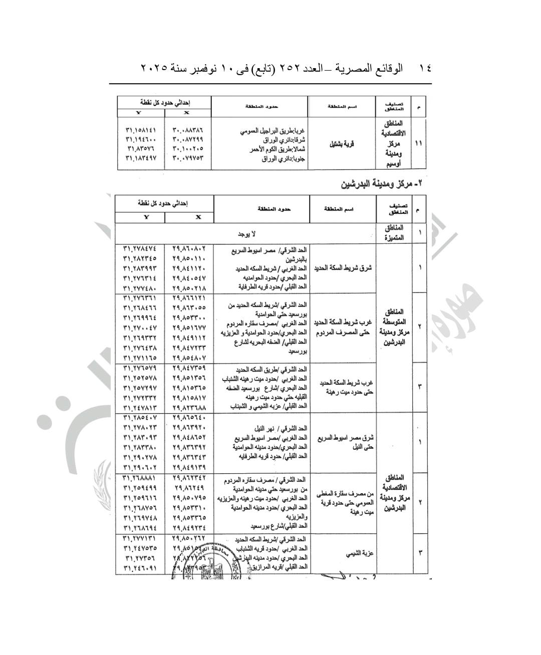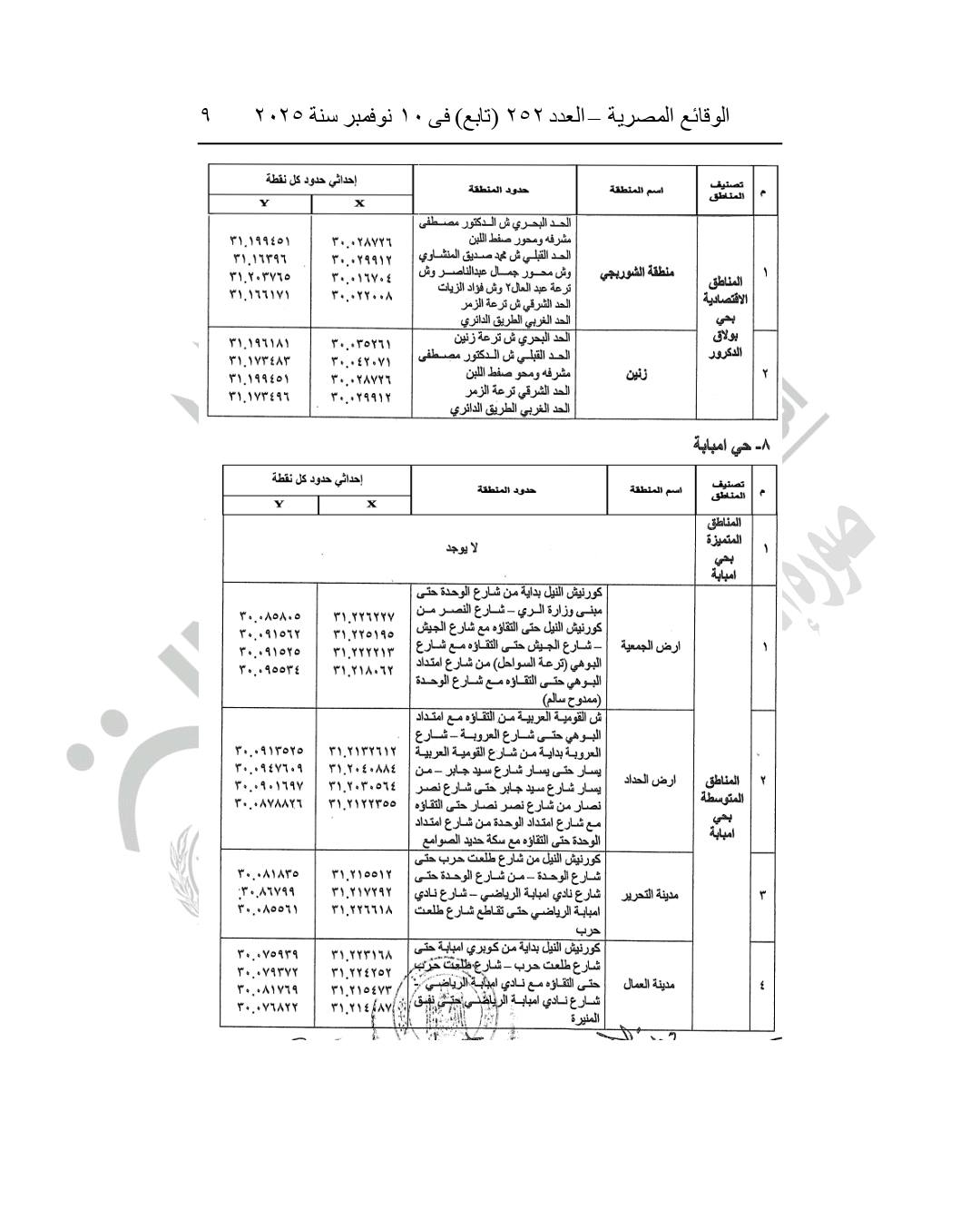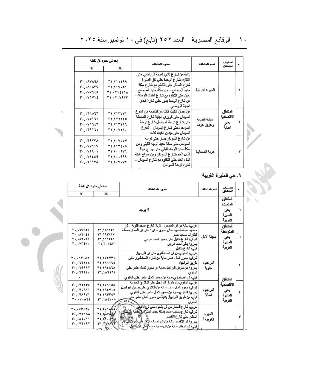 كما شملت المعايير، تقييم شبكة الطرق ووسائل المواصلات، وتوافر الخدمات الصحية والاجتماعية والتعليمية، إلى جانب مراعاة القيمة الإيجارية السنوية للعقارات الخاضعة لقانون الضريبة على العقارات المبنية رقم 196 لسنة 2008، داخل نفس المنطقة.