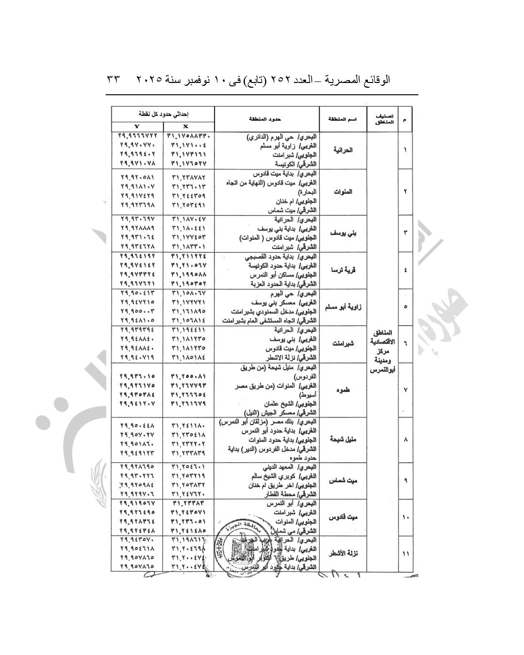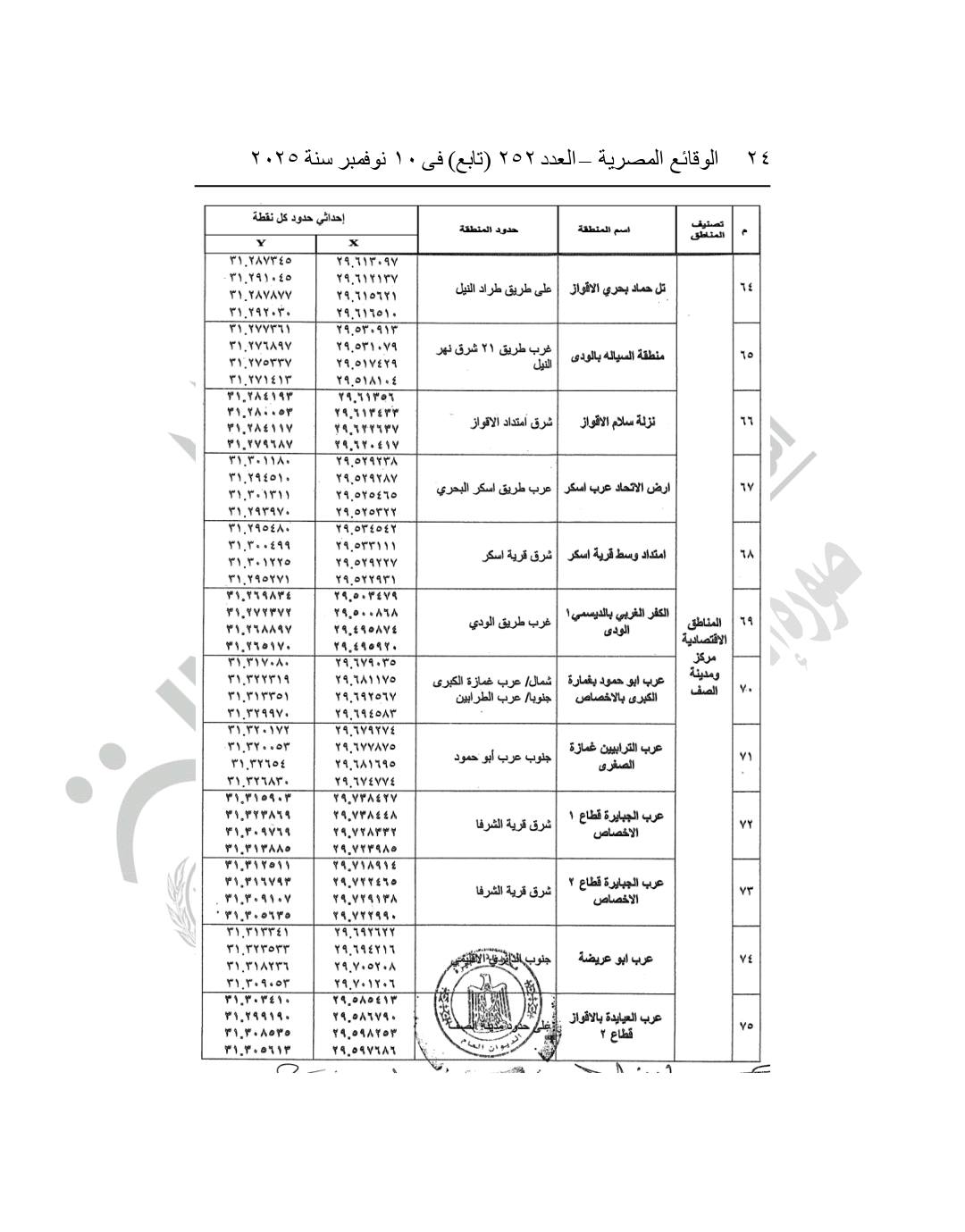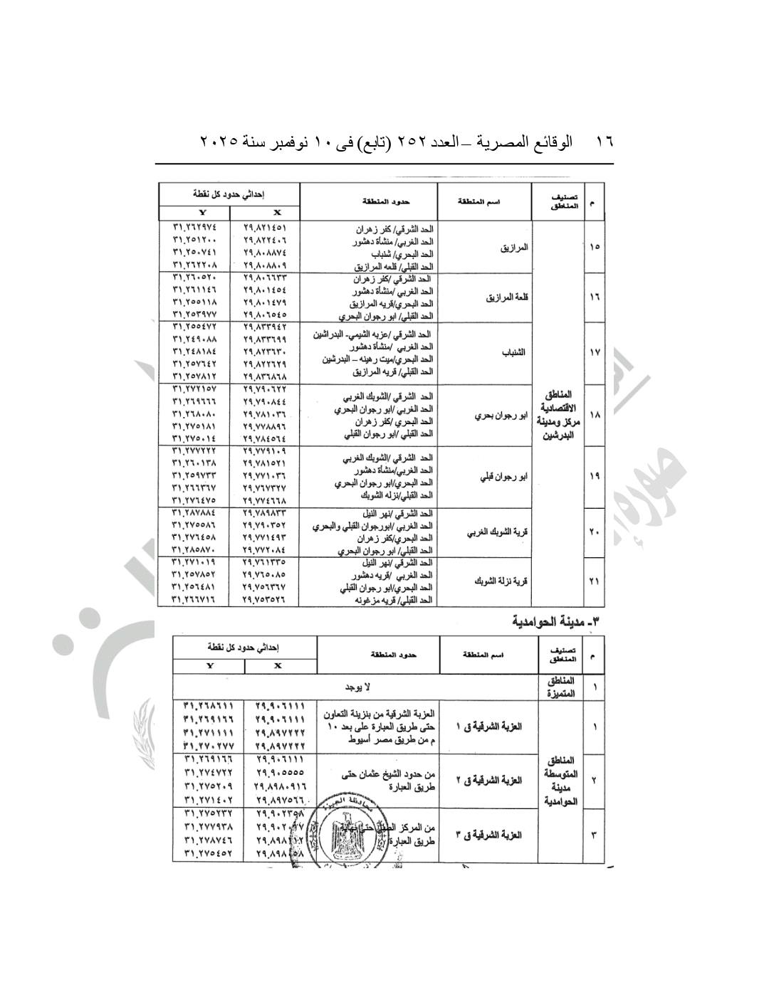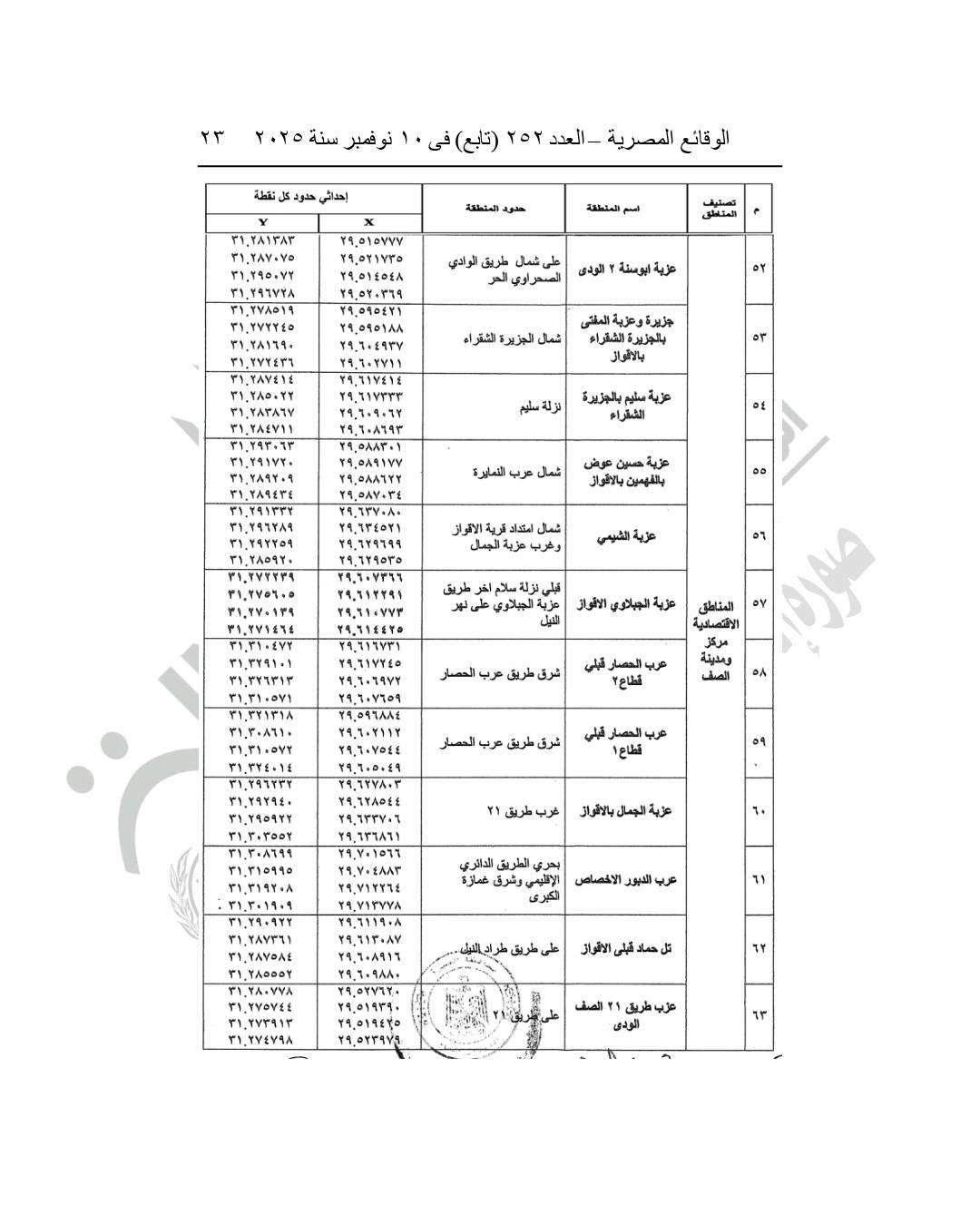 كما شملت المعايير، تقييم شبكة الطرق ووسائل المواصلات، وتوافر الخدمات الصحية والاجتماعية والتعليمية، إلى جانب مراعاة القيمة الإيجارية السنوية للعقارات الخاضعة لقانون الضريبة على العقارات المبنية رقم 196 لسنة 2008، داخل نفس المنطقة.
