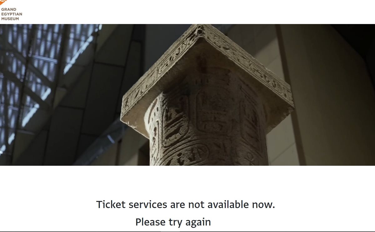 موقع المتحف الكبير خارج الخدمة.. مصدر: تم نفاد جميع التذاكر مصريين وأجانب