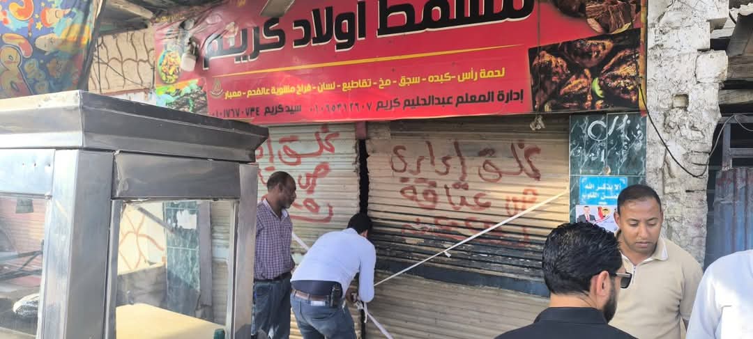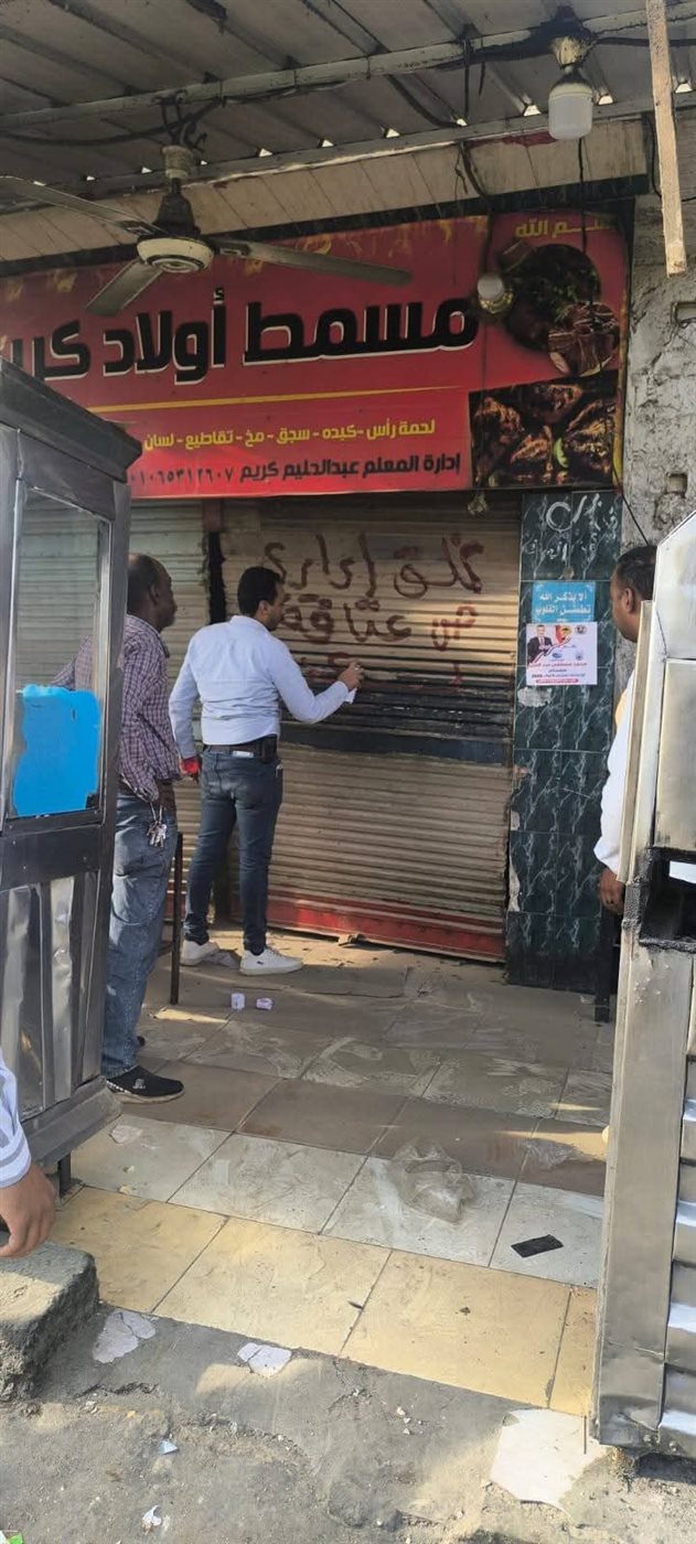 غلق وتشميع مسمط ورفع جميع الإشغالات من أمام المحال بعرب المعمل بالسويس