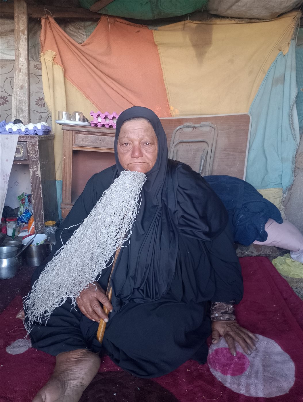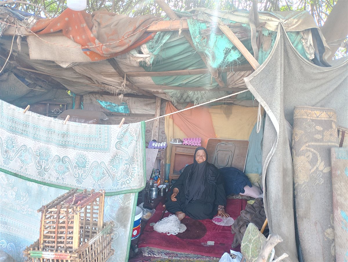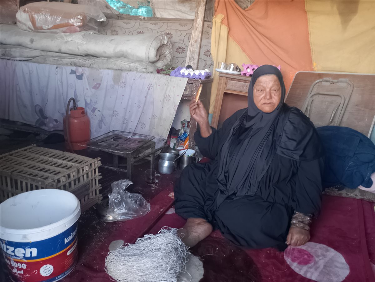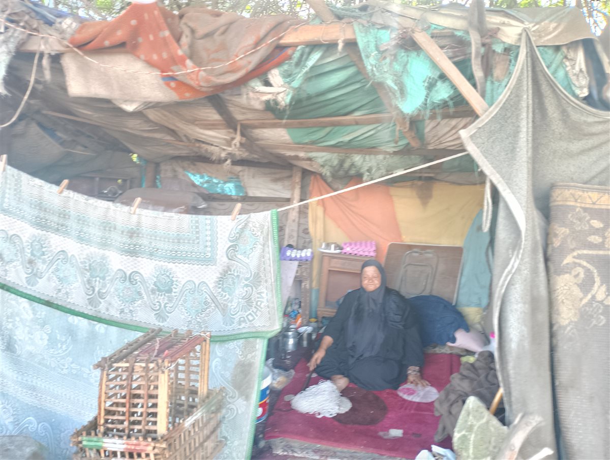 في محافظة القليوبية وفي زاوية مظلمة تقع بجوار مزلقان إسطنها بقرية كفر الجزار التابعة لمركز بنها تعيش المسنة صباح محمد محمد غياض البالغة من العمر 75 عاما داخل عشة بدائية لا تقيها ولا تحميها من برد الشتاء ولا من حر الصيف بعد أن وجدت نفسها وحيدة في الشارع بلا مأوى ولا سند عقب تخلي أبنائها عنها وتركها تواجه مصيرها القاسي الصعب في الشارع.