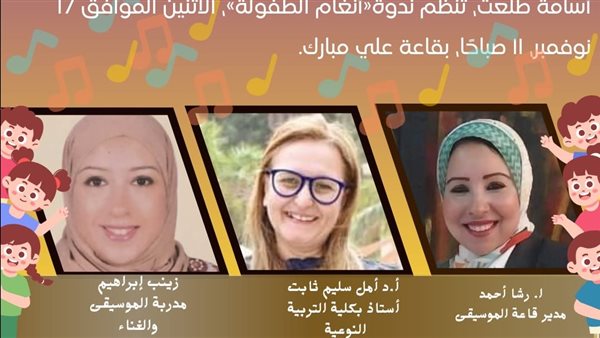 كما تشهد الاحتفالية مشاركة المدربة زينب إبراهيم، خريجة أكاديمية الفنون والمعهد العالي للموسيقى العربية، والحاصلة على دبلومة التربية الموسيقية من جامعة حلوان، ومدربة الموسيقى والغناء بمركز الجيزة الثقافي التابع لهيئة قصور الثقافة.