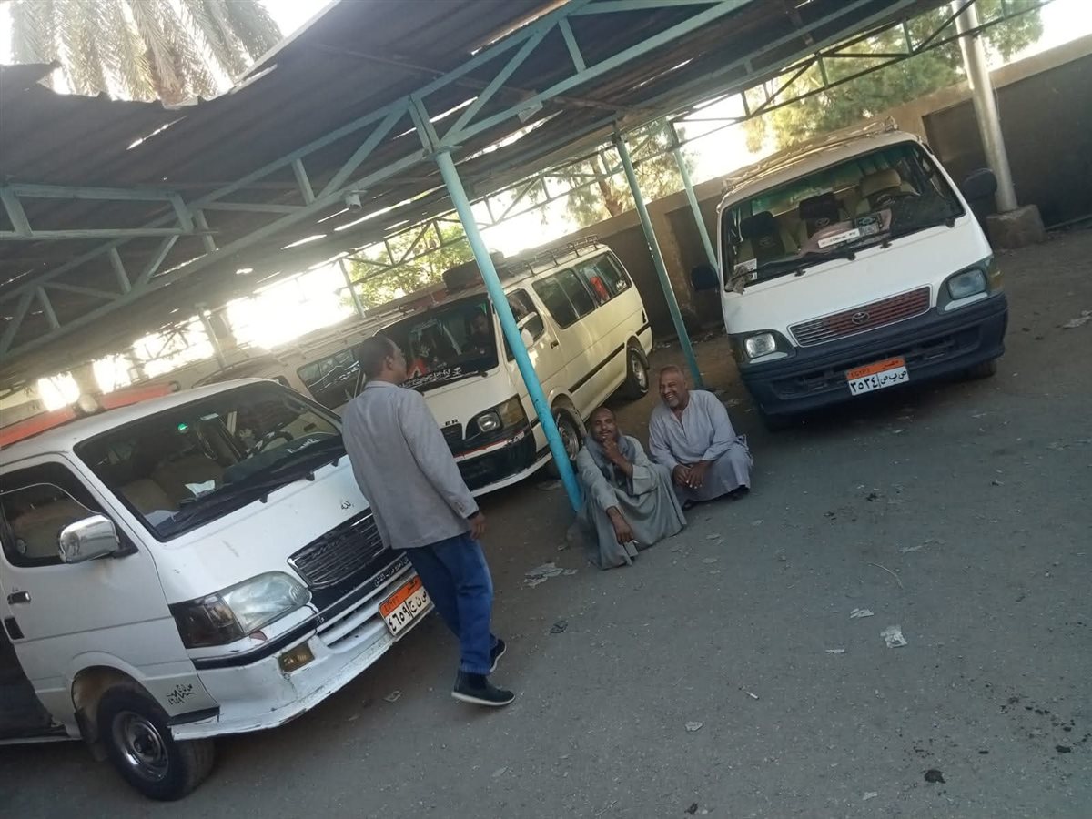 تابع مدير المواقف بمركز قوص ،جنوب محافظة قنا،محمود الفار ،حركه ركوب واستقلال المواطنين سيارات الاجره بمجمع مواقف المدينة.