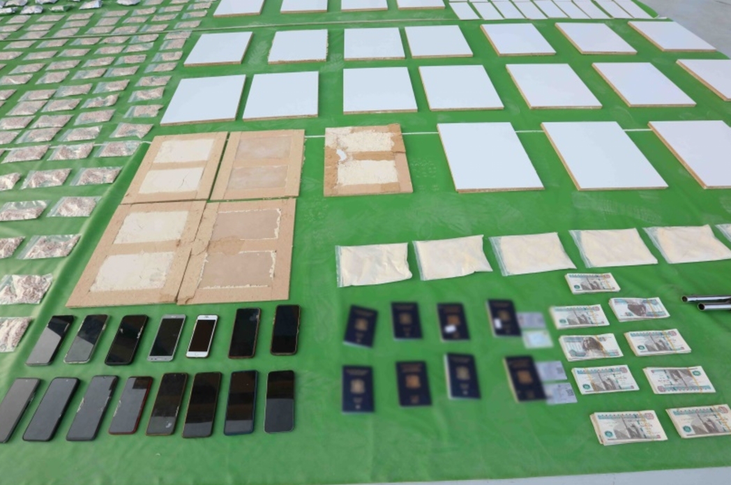 وعثر بحوزتهم على نحو 900 ألف قرص كبتاجون، بالإضافة إلى 200 كجم من بودرة الكبتاجون (ما يعادل 1.2 مليار قرص)، وألواح خشبية مخبأة داخلها المخدرات، إلى جانب معدات التحضير مثل مطحنة، بالإضافة إلى بندقية خرطوش وأربع أسلحة بيضاء وخمس سيارات.
