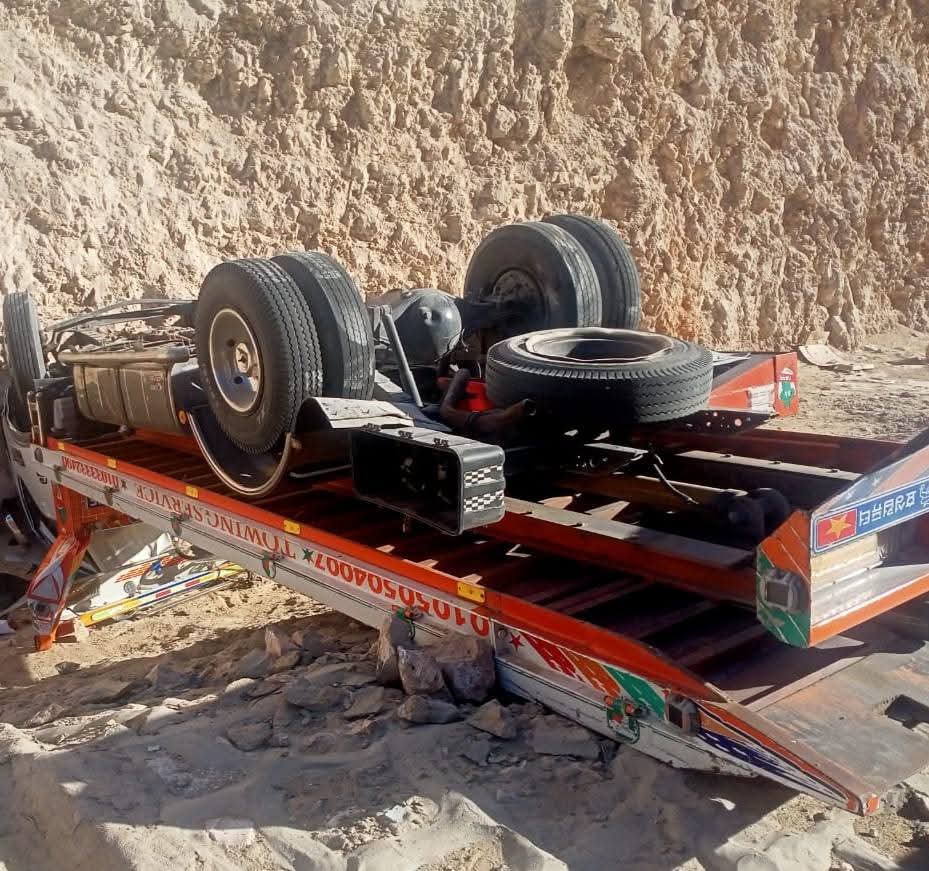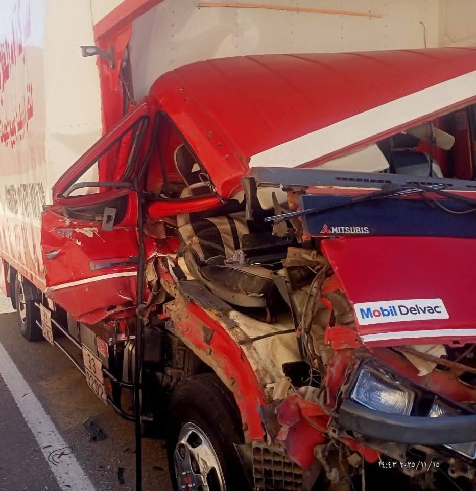 4 مصابين في تصادم سيارتين نقل بطريق الجلالة – العين السخنة