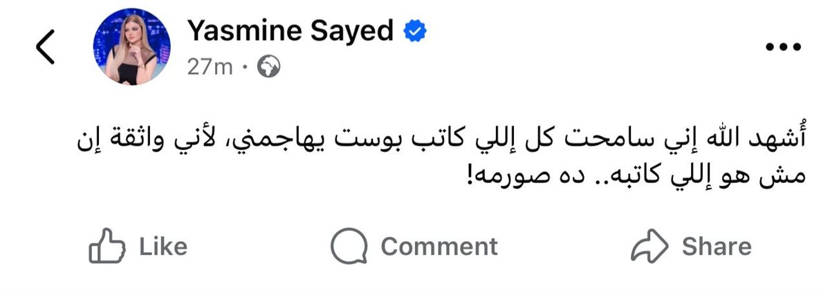 أُشهد الله إني سامحت كل إللي كاتب بوست يهاجمني، لأني واثقة إن مش هو إللي كاتبه.. ده صورمه!