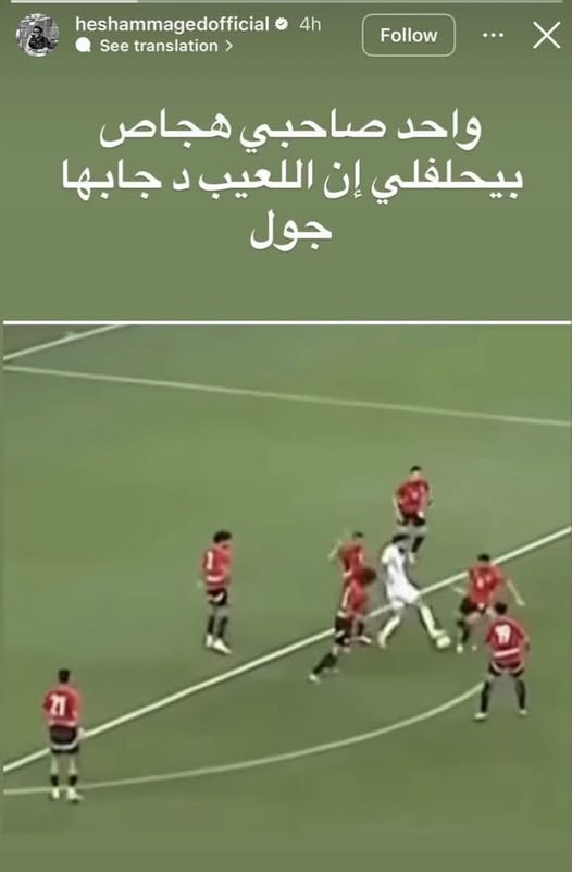 وكتب ماجد في استوري عبر حسابه الرسمي على موقع إنستجرام: واحد صاحبي هجاص بيحلف لي إن اللعيب ده جابها جول.