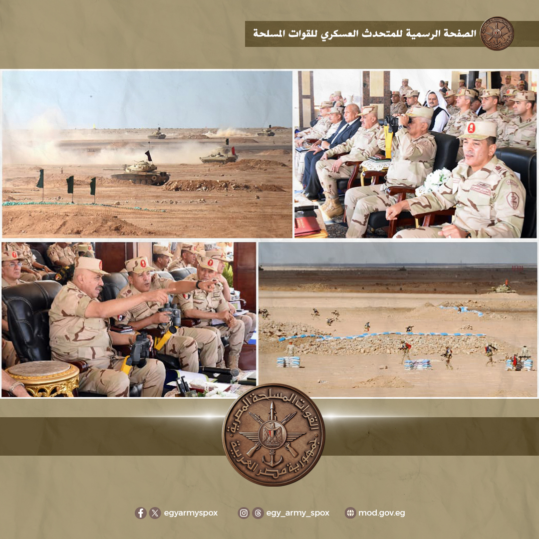 شهد الفريق أول عبدالمجيد صقر القائد العام للقوات المسلحة وزير الدفاع والإنتاج الحربى المرحلة الرئيسية للمشروع التكتيكى بجنود الذى تنفذه إحدى وحدات المنطقة الغربية العسكرية بإستخدام الذخيرة الحية وذلك بحضور الفريق أحمد خليفة رئيس أركان حرب القوات المسلحة وعدد من المحافظين وعدد من قادة القوات المسلحة والدارسين بالكليات والمعاهد العسكرية والإعلاميين والشخصيات العامة وعدد من شيوخ وعواقل مطروح وسيوة وطلبة جامعة مطروح .