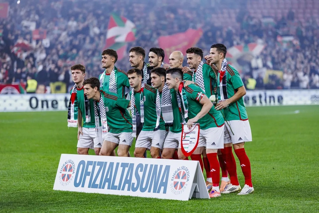 واجه المنتخب الفلسطيني لكرة القدم، أمس السبت، منتخب إقليم الباسك في بلباو في مباراة ودية هدفها إظهار التضامن المحلي مع الفلسطينيين.
