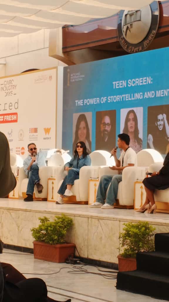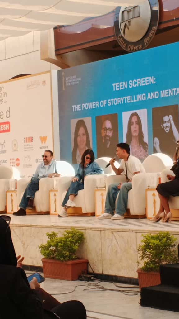 بدأت منذ قليل جلسة نقاشية بعنوان "سينما المراهقين: قوة السرد وعلاقته بالصحة النفسية"، والتي تسلط الضوء على الدور الإنساني والفكري للسينما في التأثير على الأجيال الشابة وتعزيز الوعي بالصحة النفسية، وهي من فعاليات مهرجان القاهرة السينمائي الدولي في دورته ال46، وكان ضمن حضور تلك الجلسة الفنان حمزة دياب، وسط حضور فني مميز وكبير من الفنانين اللامعيين في مجال الفن.
