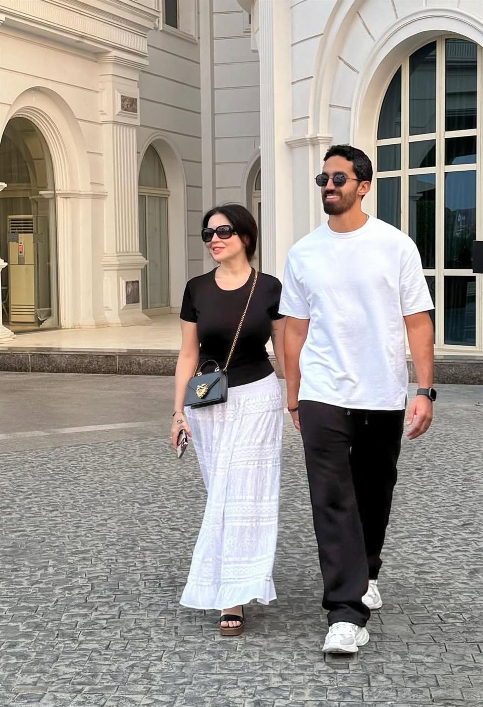 بإطلالة رومانسية.. مي عز الدين وزوجها أحمد تيمور على أنغام أغنية حبيبتي ملاك