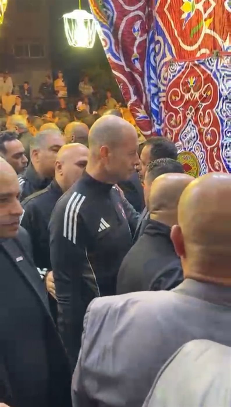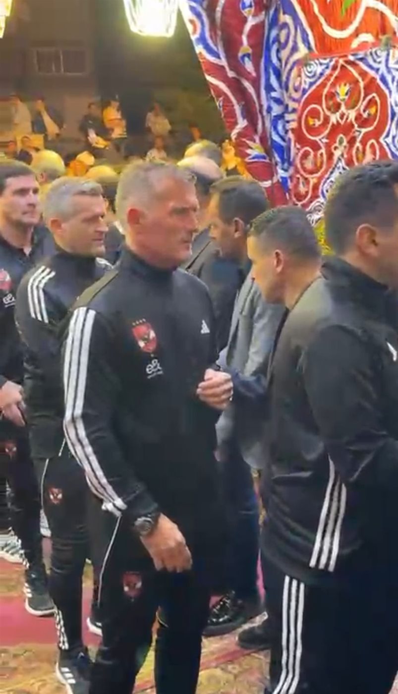 حرص الجهاز الفني لفريق الكرة الأول بالنادي الأهلي بقيادة ييس توروب عن التواجد في عزاء لاعب نادي الزمالك محمد صبري المقام حاليًا في مسجد الحامدية الشاذلية.