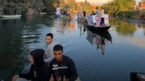 واختار المرشح وأنصاره الظهور على مراكب صغيرة عبر الترعة المارة بالقرية في مشهد لفت انتباه الأهالي الذين تجمعوا على جانبي المياه لمتابعة التحرك الانتخابي غير التقليدي.