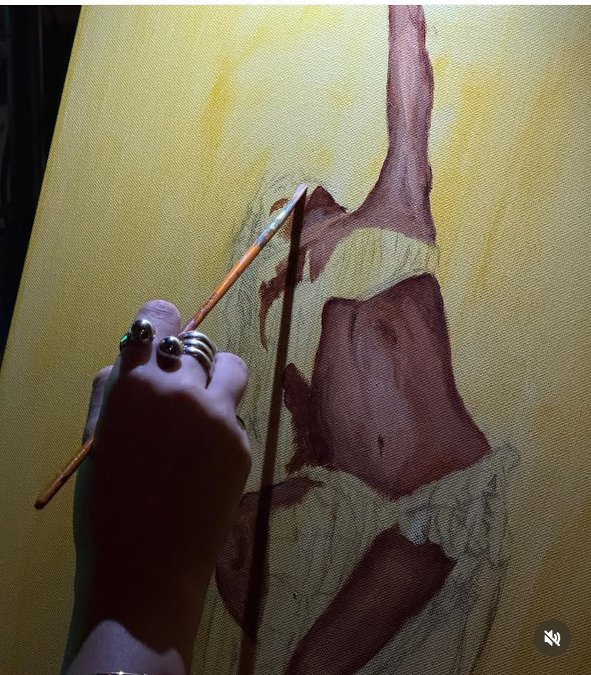 ظهرت لي لي وهي تمارس هوايتها المفضلة وهي الرسم حيث كشفت النقاب عن أحدث لوحاتها الجديدة اعتمدت لي لي أحمد حلمي على لوحة فيها راقصة تمارس مهنة الرقص الشرقي، مستخدمة عدد من ألوان الزيت الجميلة.