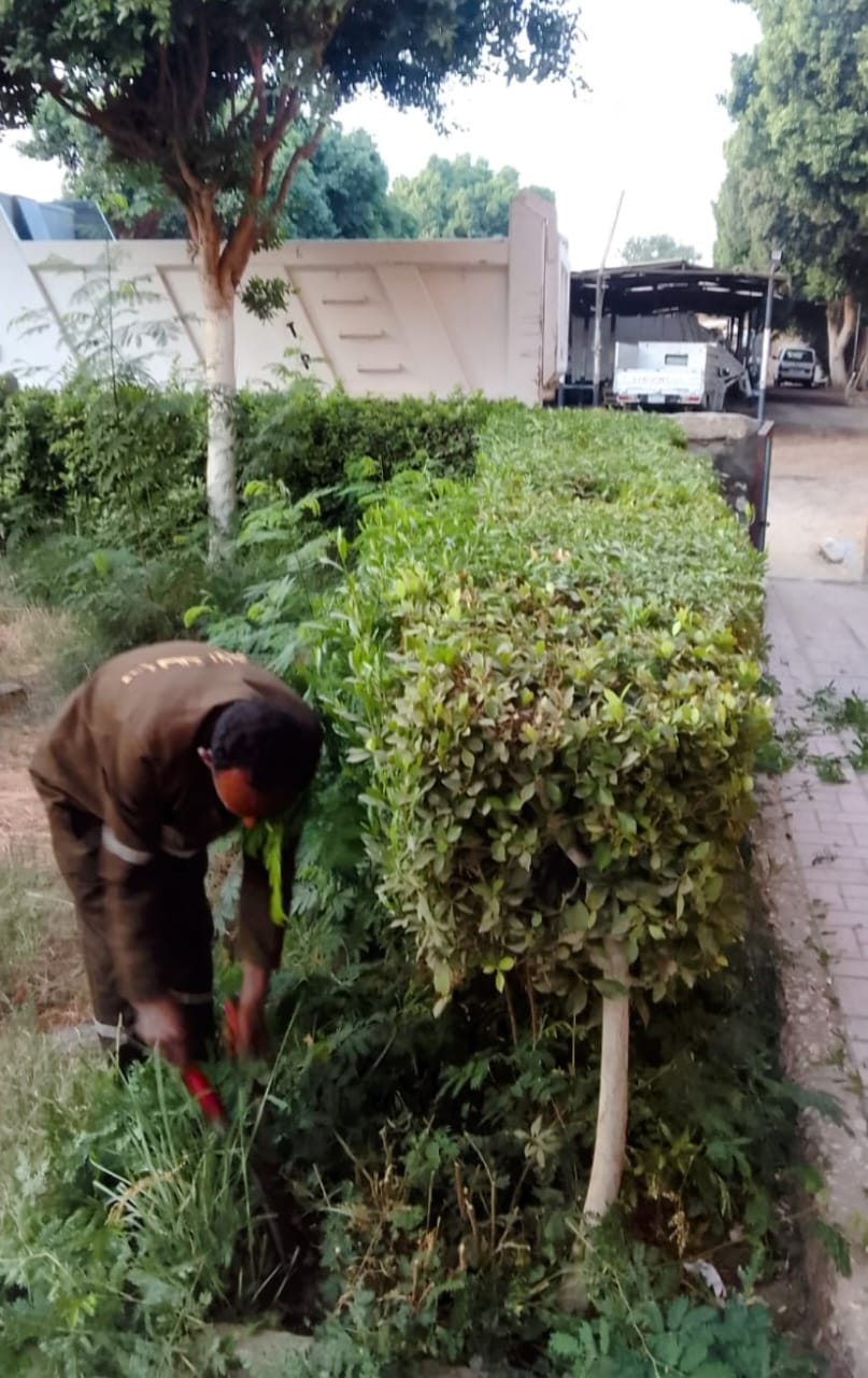 قص وتهذيب أشجار الحديقة العامة وحديقة الشهيد عبد المنعم رياض عند مدخل المدينة، بإشراف حمادة بشاري مدير إدارة النظافة والتجميل.