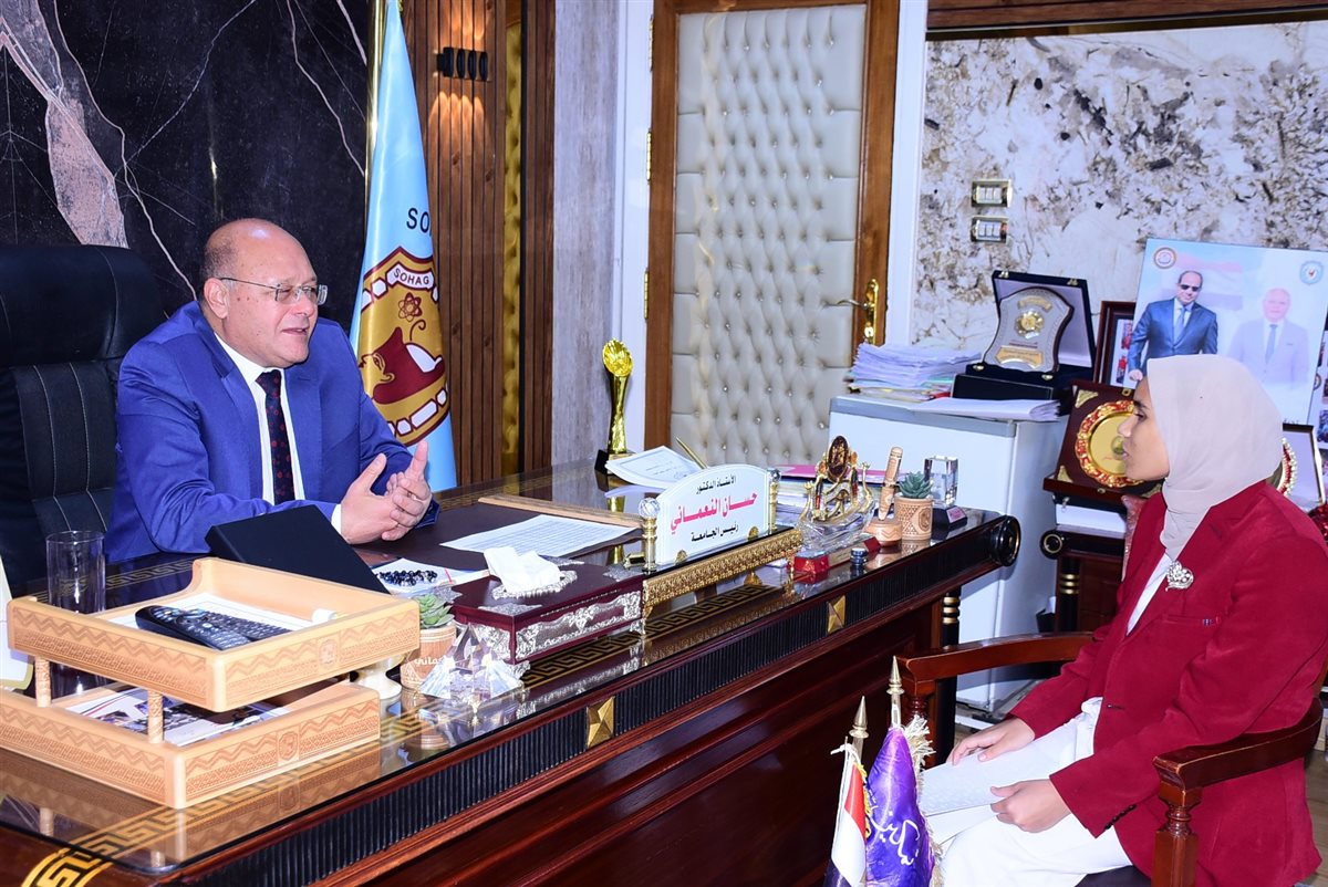 وأعرب النعماني خلال لقائه عن فخره وامتنانه الشديد بما قدمته الطالبة سمر في هذا الحوار والذي يعكس روح الإرادة والتحدي التي يتميز بها طلاب جامعة سوهاج من ذوي الإعاقة، ويؤكد قدرتهم على تحقيق النجاح في مختلف المجالات، مضيفا أن هذه التجربة تبرهن علي وجود نماذج مبدعه من أبنائنا من ذوي الإعاقة، وان الجامعة ستظل دائمًا داعمة لهم لتحقيق أحلامهم رغم التحديات و دمجهم الحقيقي في المجتمع الجامعي ومشاركتهم في الأنشطة الجامعية والإبداعية وتوفير بيئة تعليمية دامجة لهم تضمن تكافؤ الفرص لجميع الطلاب،