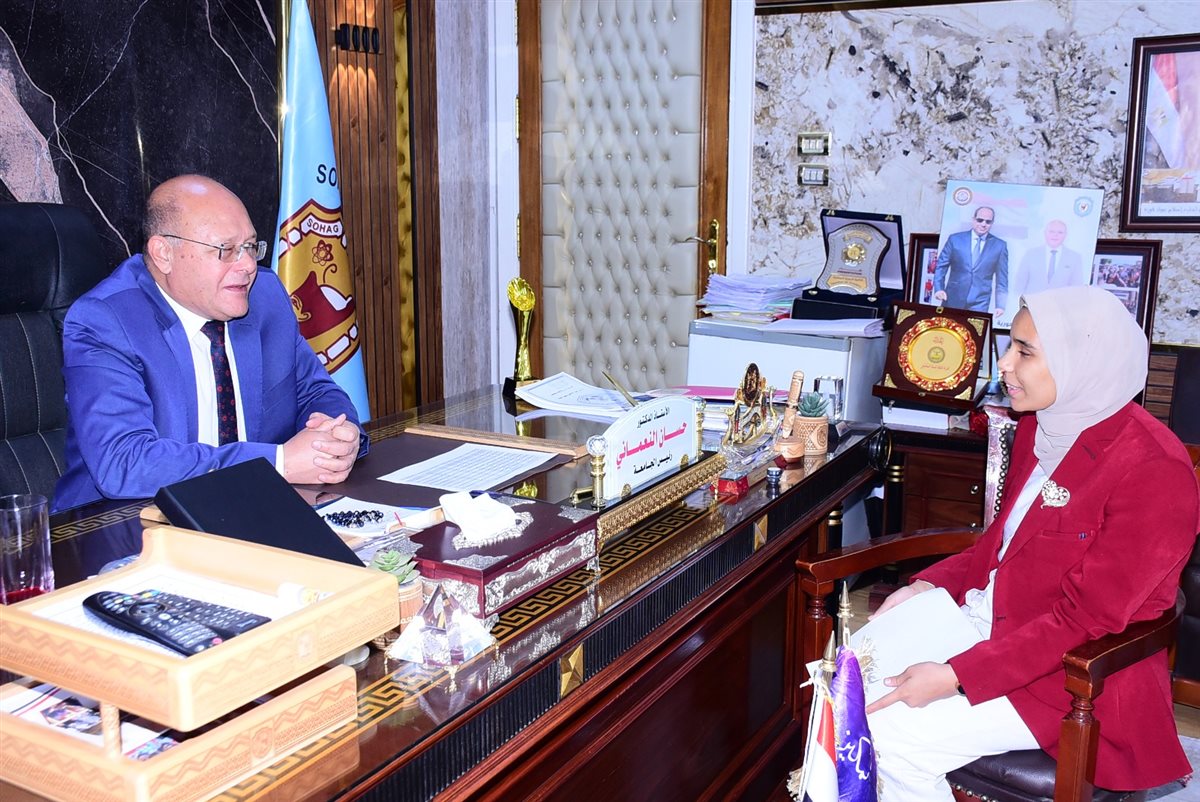 طالبة من ذوي الإعاقة بجامعة سوهاج تتألق كمذيعة وتجري حوارًا ملهمًا مع النعماني