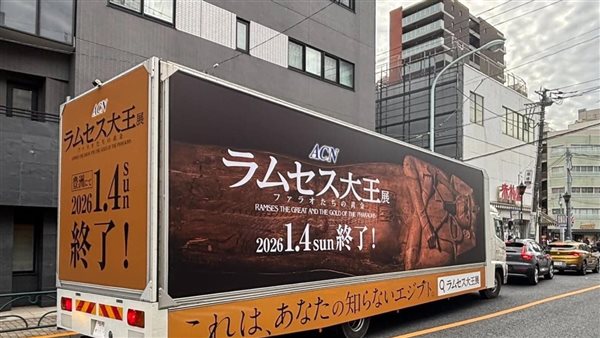 في ضوء ما يشهده معرض "رمسيس وذهب الفراعنة" المقام حالياً في العاصمة اليابانية طوكيو، من نجاح كبير وتوافد ألاف الزائرين من مختلف المدن اليابانية لزيارته، وفي إطار الحملة الترويجية الخاصة بالمعرض، تم إطلاق شاحنة دعائية متنقِّلة (Senden Truck) تجوب الشوارع الرئيسية في طوكيو وعدد من المدن اليابانية الكبرى، بهدف رفع الوعي الجماهيري بالمعرض واستقطاب المزيد من الزوار.