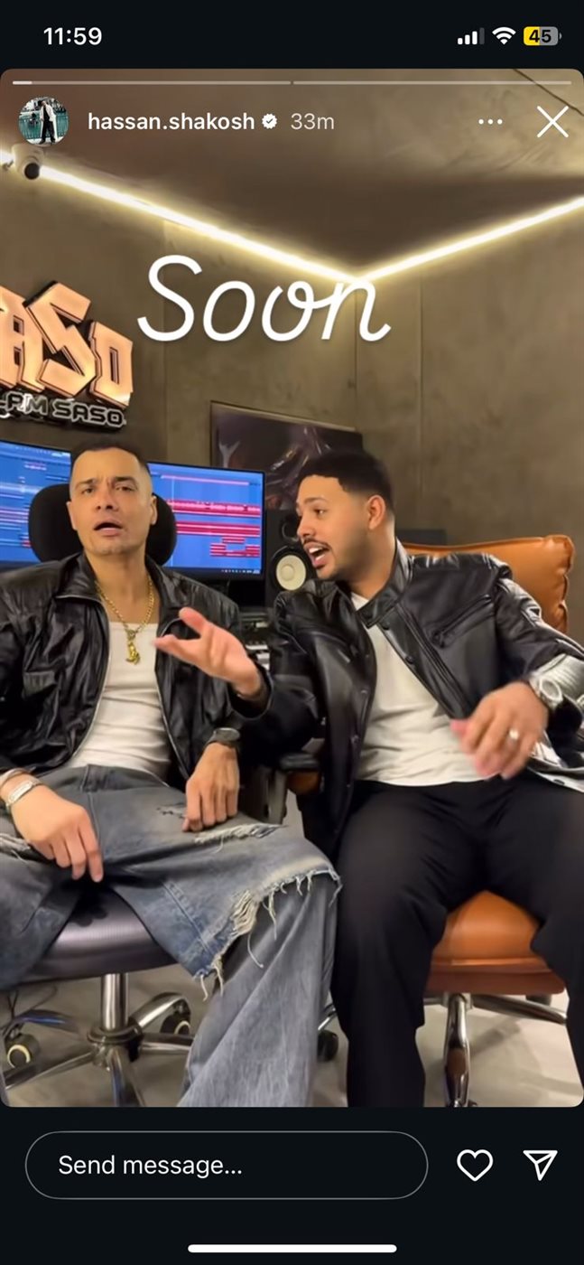 وقد نشر المطرب حسن شاكوش مقطع فيديو يجمعه بالمطرب محمد شاهين من كواليس تسجيل الأغنية، وذلك عبر خاصية الأستوري، على حسابه الرسمي بموقع إنستجرام، وعلق قائلًا: “قريبًا”.