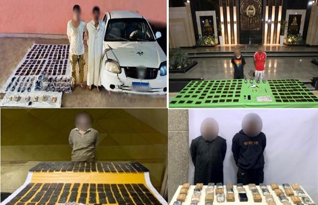 وأسفرت الحملة عن ضبط باقي أفراد تلك البؤر الإجرامية وبحوزتهم كميات ضخمة من المواد المخدرة المتنوعة، بلغت نحو 750 كيلوجراماً من أصناف مختلفة تشمل: الحشيش، الشابو، الهيدرو، الهيروين، البانجو، والأفيون، إضافة إلى أكثر من 32 ألف قرص مخدر.