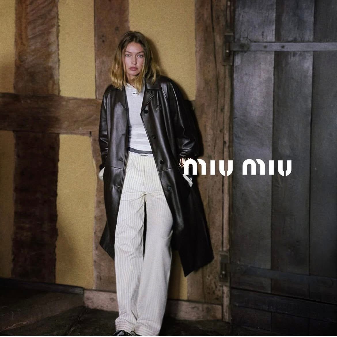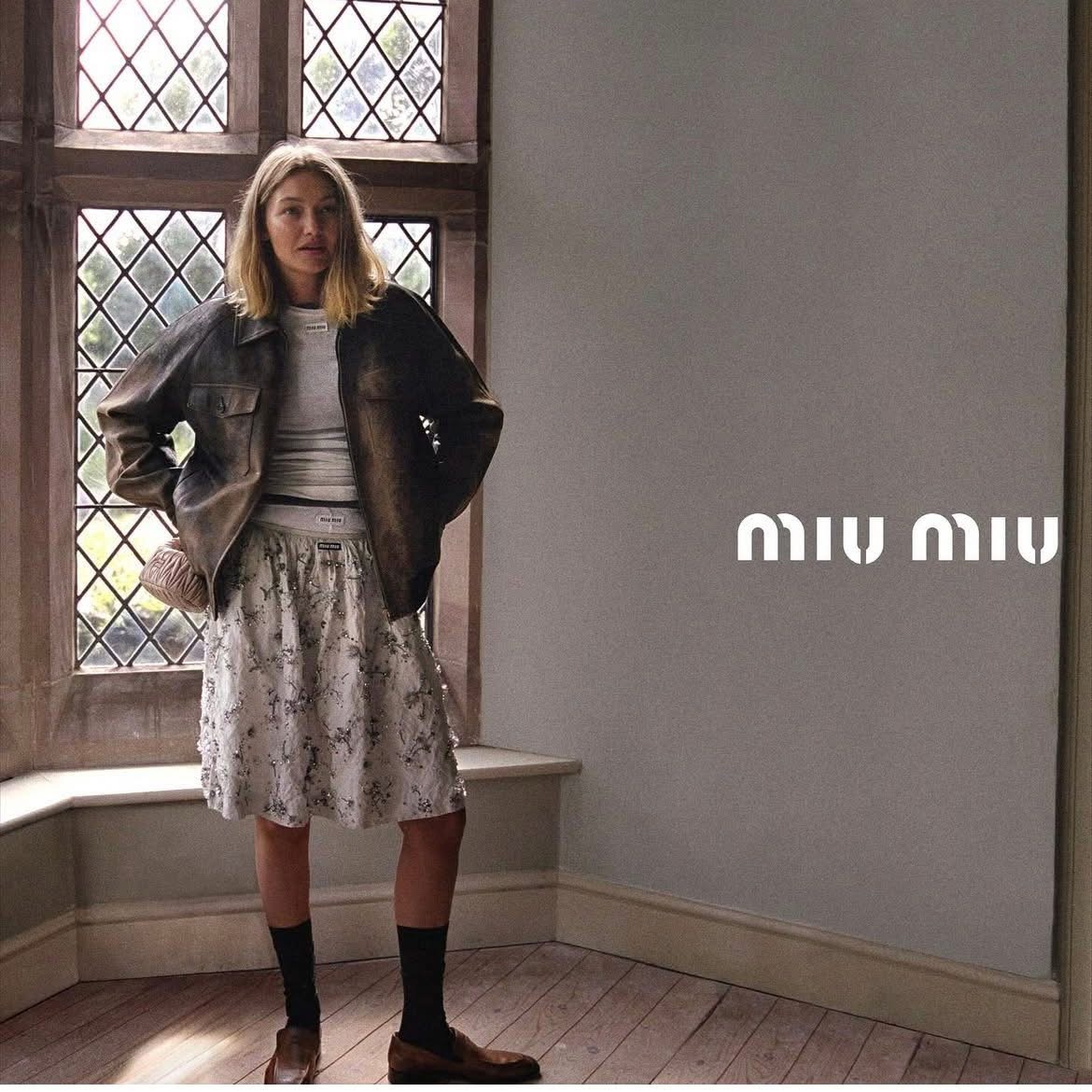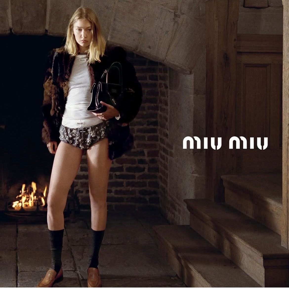 عارضة الأزياء جيجي حديد نجمة حملة Miu Miu لموسم الأعياد